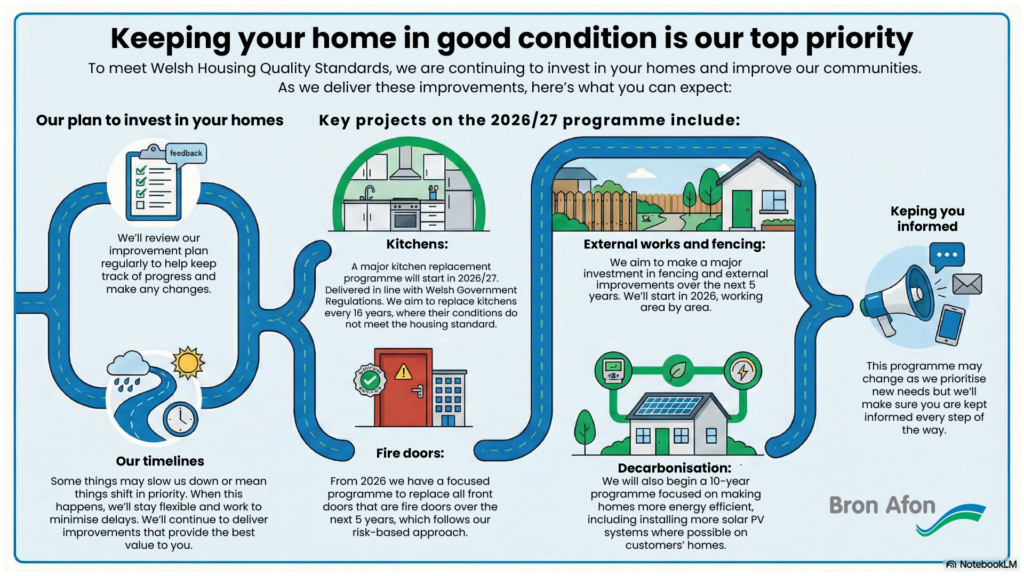 This video focuses on the safety and security aspects of WHQS highlighting how the new standards ensure social housing protects tenants through structural, environmental, and health safeguards. It underscores the commitment to providing homes that not only look good but are also secure and hazard‑free.